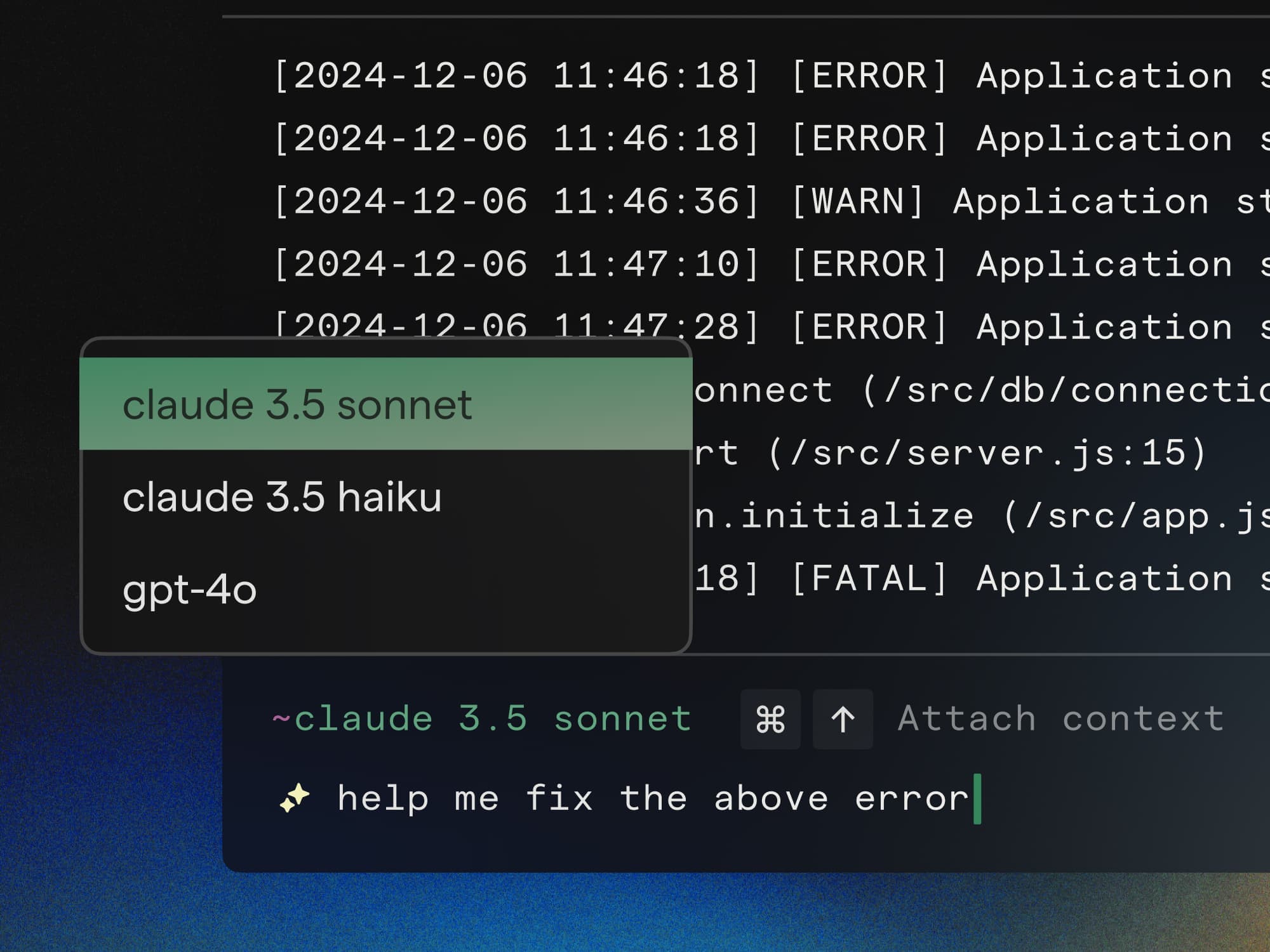 Each of these models excel at different CLI and programming tasks, and strike a different balance between answer complexity and latency. Warp now defaults to Claude 3.5 Sonnet, which we’ve observed to be most helpful for multi-step development workflows.