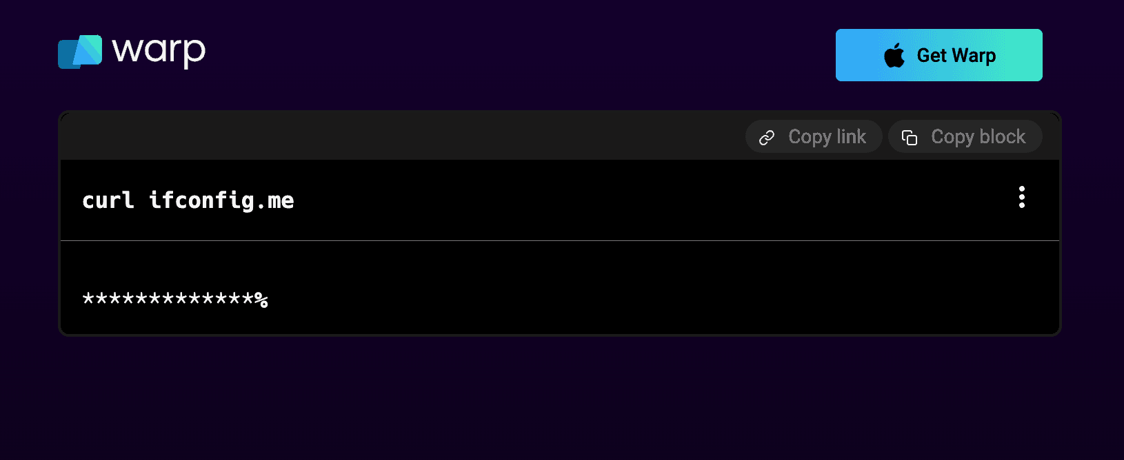 Here is an example of a Warp shared block with the secrets removed: