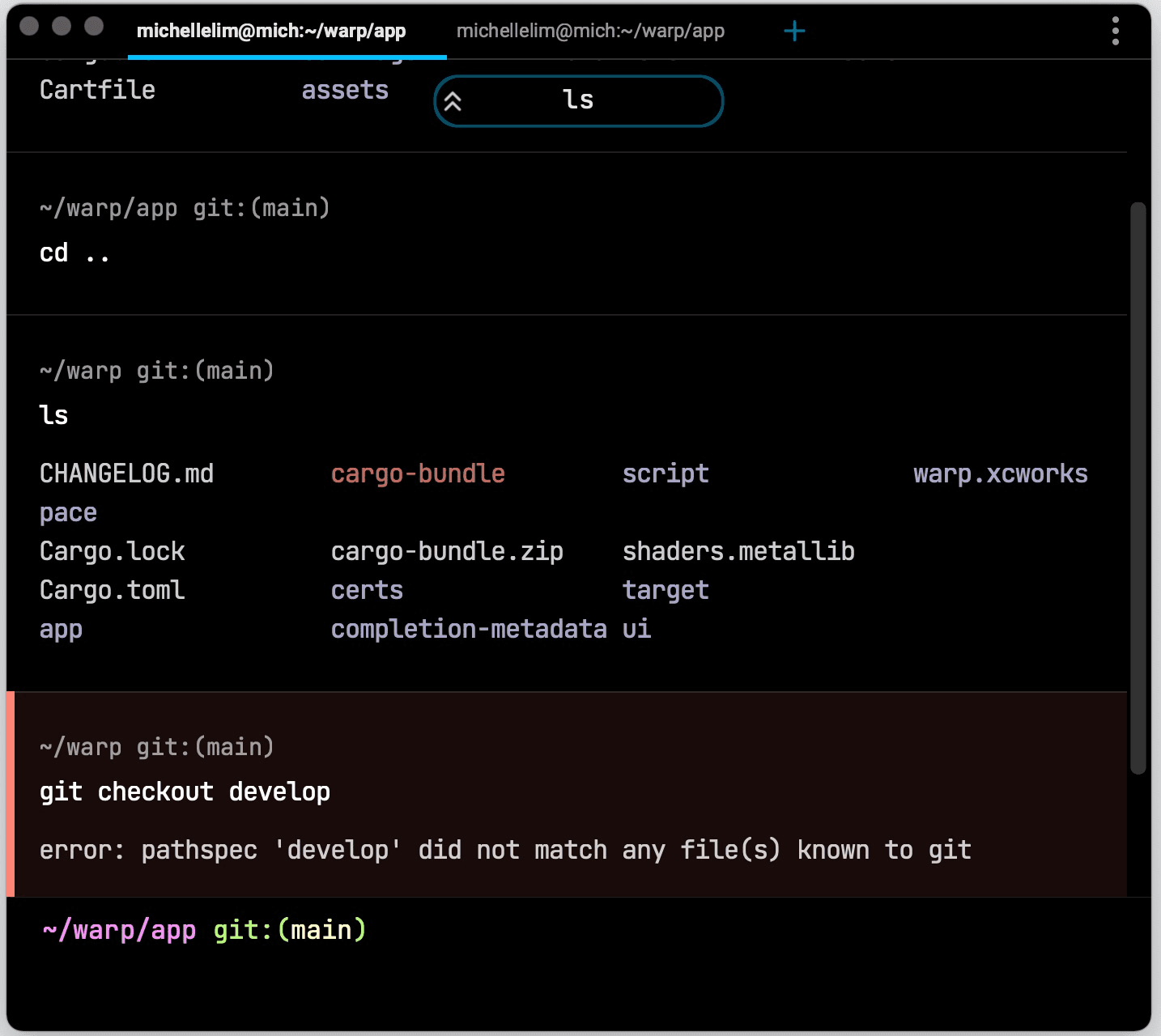 Alongside glyphs and images, the rectangles we produce from these shaders form the UI surface of Warp. Using the GPU for rendering is what enables us to render large amounts of terminal text and UI at over 60fps on a 4K screen.