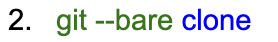 - We have 2 parts: green and blue contiguous text (“git --bare” and “ clone”).