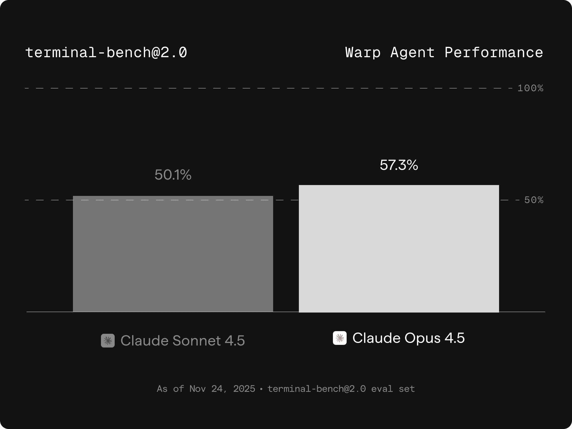 Claude Opus 4.5 is built for long-horizon tasks, which pairs perfectly with Warp’s new planning entrypoint: /plan. Creating a persistent plan gives Claude Opus 4.5 a structured place to document its reasoning and decisions, improving its success rate on long-horizon, autonomous tasks.