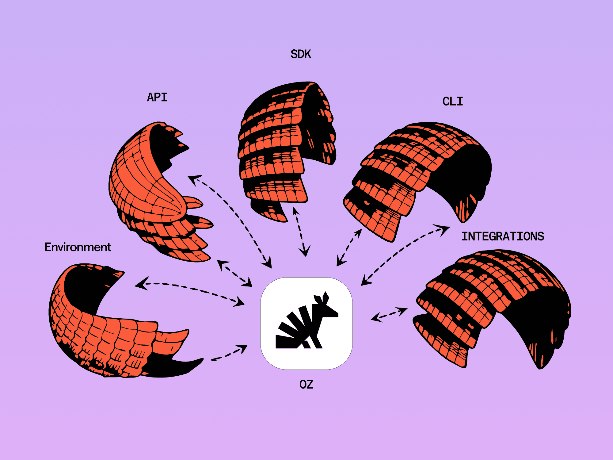 Oz is built in layers and is inherently flexible, which was a key design goal. Oz is easy to set up with Warp and it can also work as a standalone tool through the web or the Oz CLI.