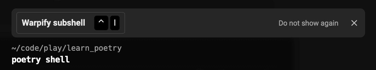 In short, if you’re running poetry shell in Warp, you should be sure to Warpify your subshell.