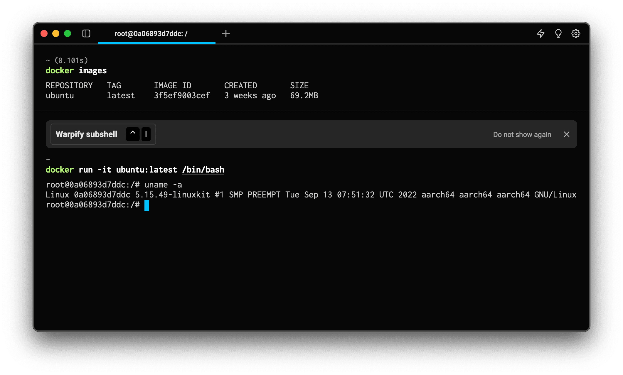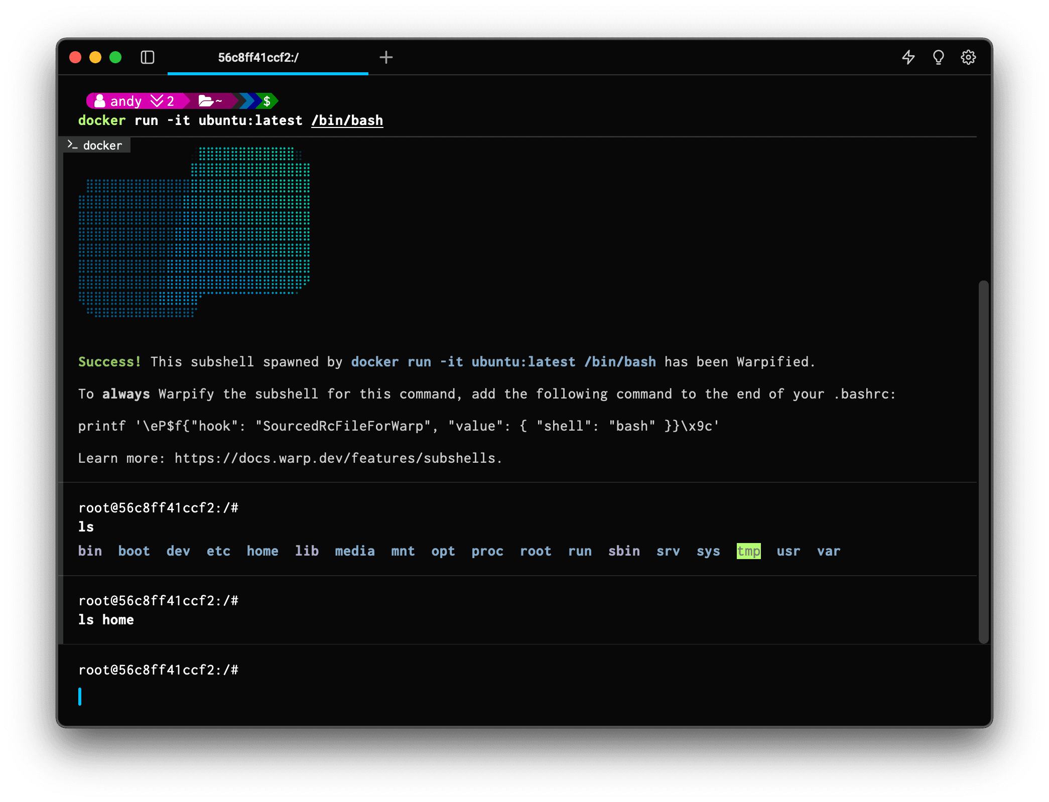 Check out the docs or run a command like docker exec to experience the power of Warpification today!