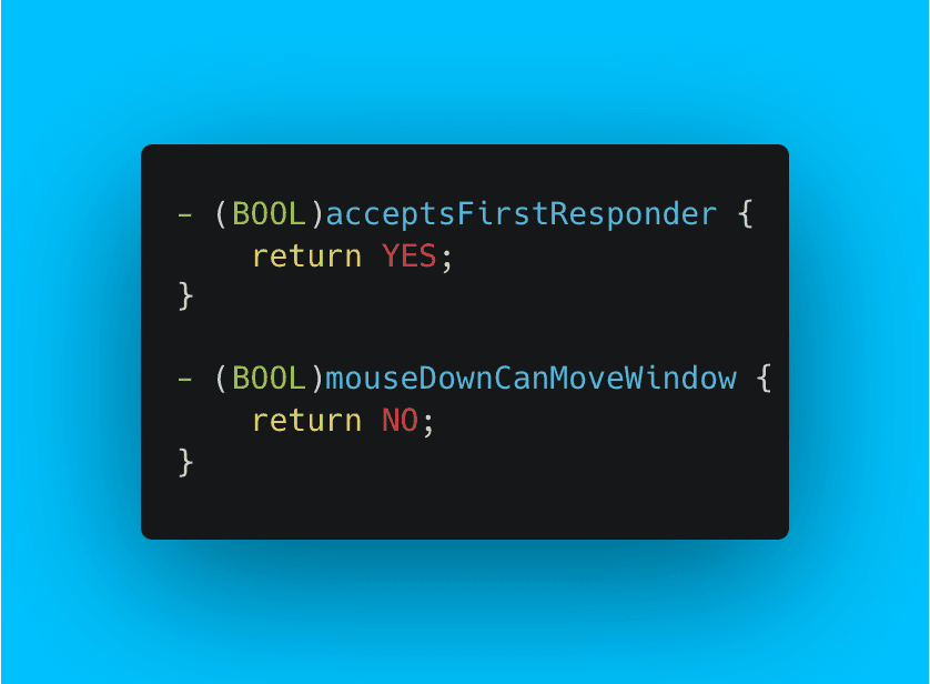 Next, I turned to the examples that I knew worked: Electron and Chrome. Luckily, both Electron and Chromium are open-source projects, so I could dig around in their code freely. Unluckily, both projects are complex and it was not at all easy to dive in with no prior knowledge and understand how macOS windows are created by each.