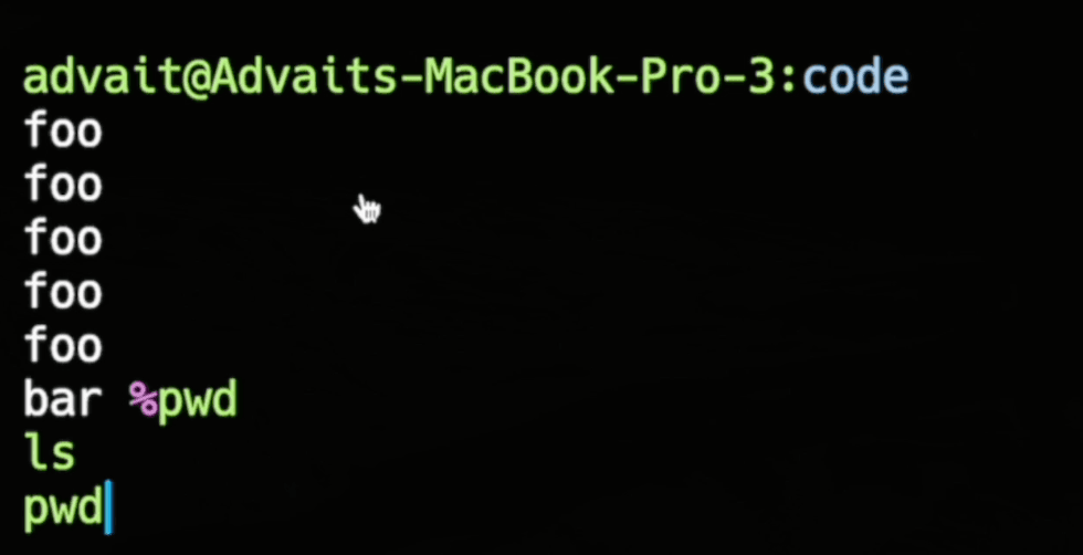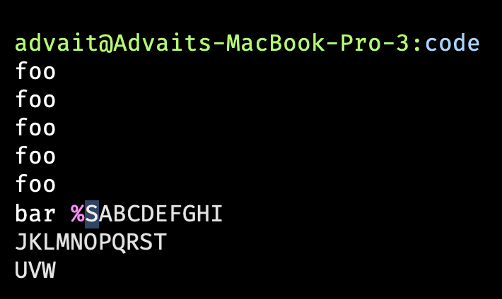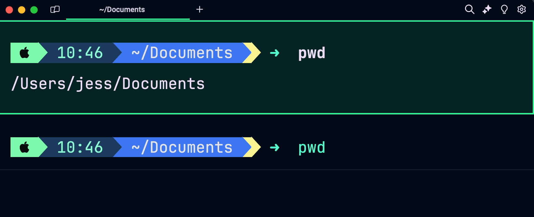 In this example, the highlighted cell with the ‘%’ contains a hidden bit of information that indicates to Warp that this is the last cell of the prompt. In other words, everything before that demarcation is the prompt. Everything after that demarcation is considered the command.