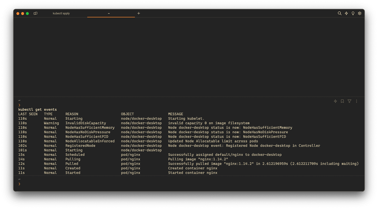 If you’re using Warp as your terminal, you can easily retrieve this syntax using the Warp AI feature:Entering kubectl get events in the AI question input will prompt a human-readable step by step guide including code snippets.
