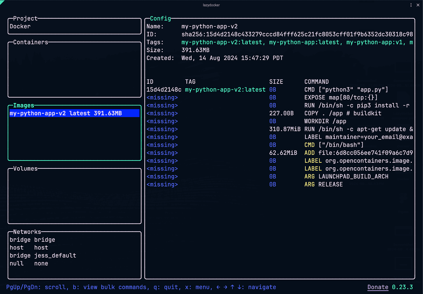 Once you create the image, you should see it show up in LazyDocker’s TUI: