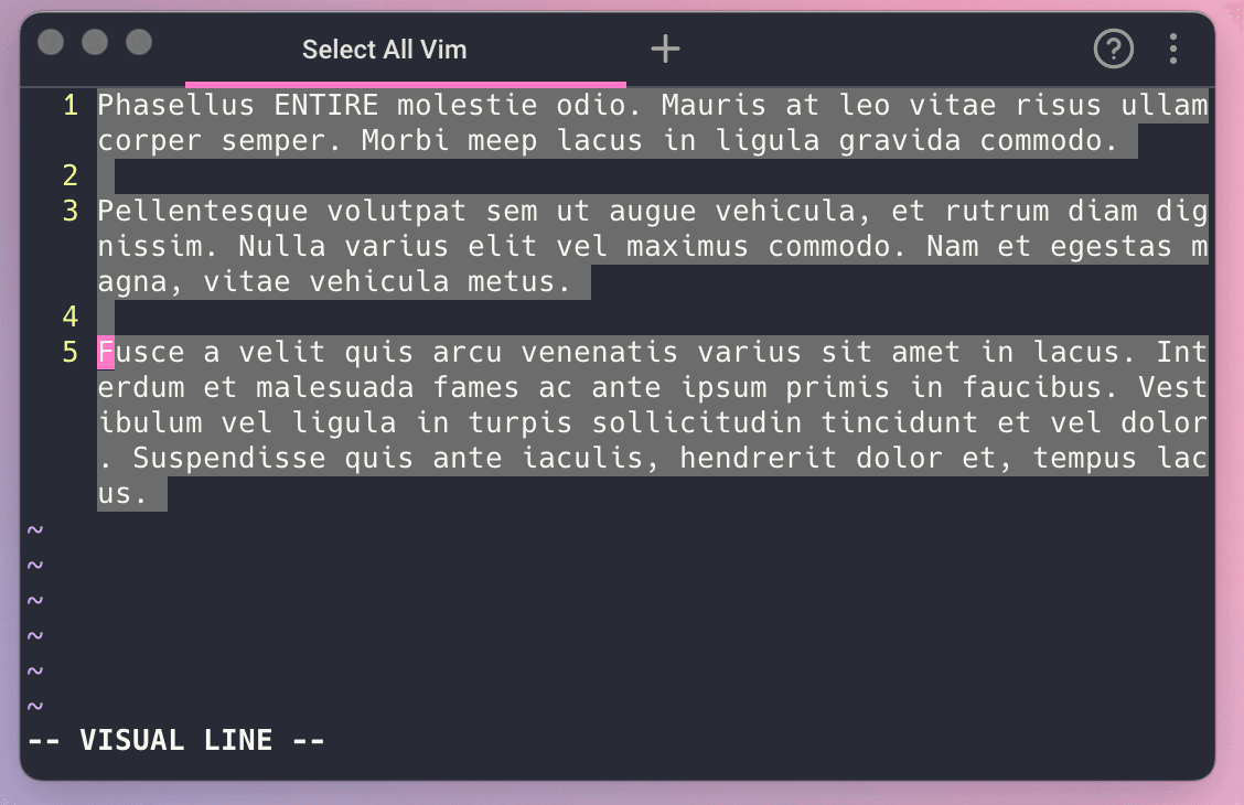 At this point, you can scroll up and down or use Vim commands to de-select lines.